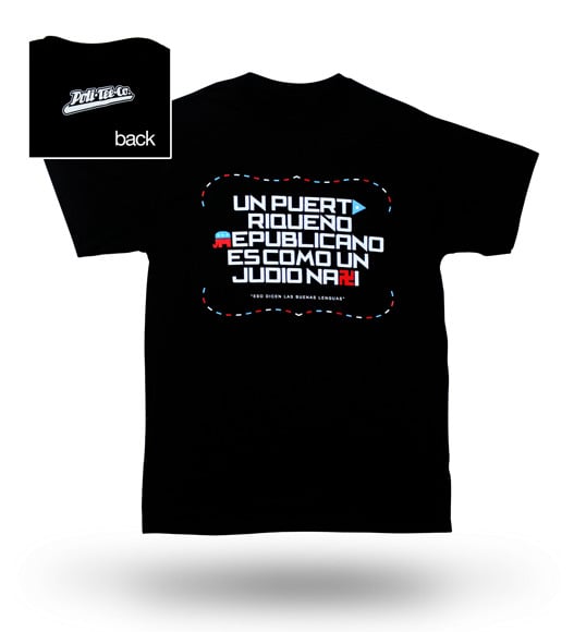Esta tee se diseño con la idea de exponer el posible paralelismo entre la relación judeo nazi con la puertorriqueña republicana norteamericana,